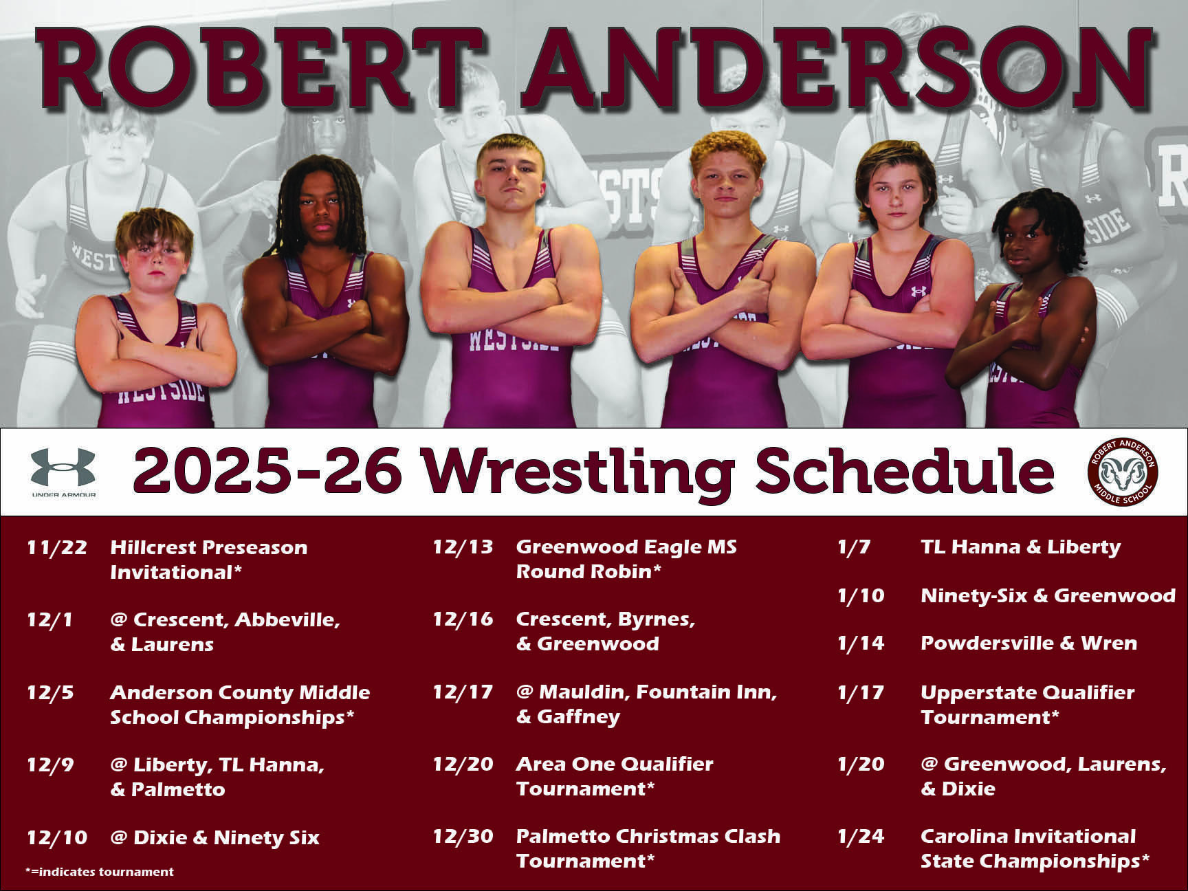 Wrestling Schedule The wrestling schedule for this year has been announced. Come see our RAMS wrestlers in action.